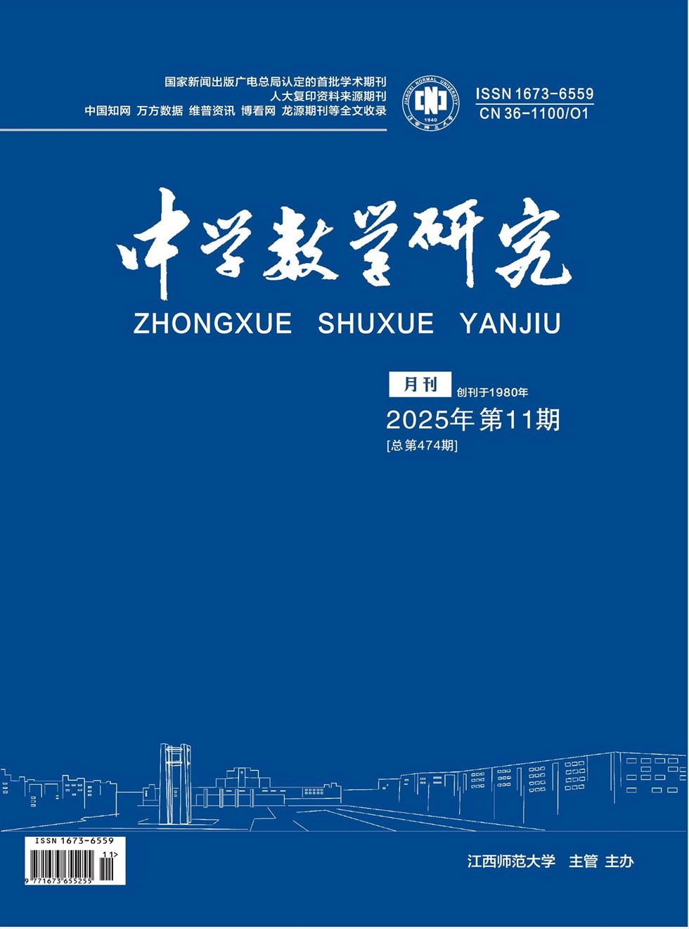 《中学数学研究》创刊于1980年,由江西师范大学主管主办,面向全国公开发行的科技期刊。《中学数学研究》主要介绍中国国内外中学数学的动态,总结和交流中学数学教学的新思想,新理念和新方法,及时传播和推广中学数学研究的新成果;介绍学习数学的方法和求解数学问题的技巧,提高中学生学习数学的水平。