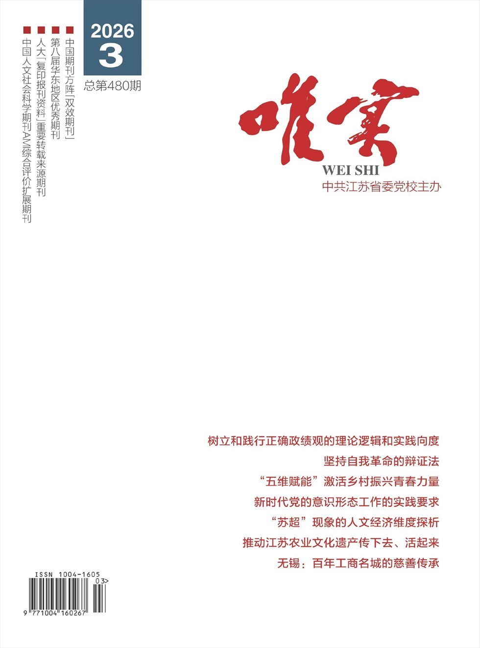 《唯实》杂志是中共江苏省委党校主办的综合性社会科学期刊,是中国期刊方阵“双效期刊”、第三届华东地区“优秀期刊”、江苏省期刊方阵“双效期刊”,已有25年办刊历史。