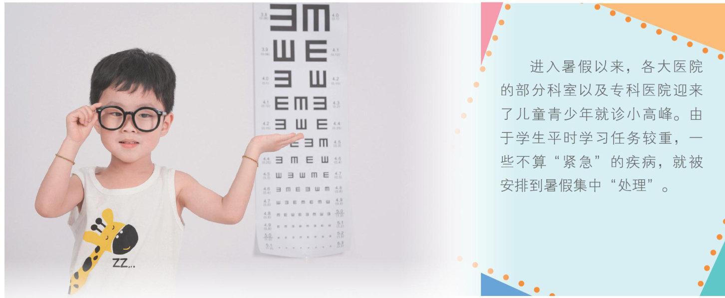 进入暑假以来,各大医院的部分科室以及专科医院迎来了儿童青少年就诊小高峰。由于学生平时学习任务较重,一些不算“紧急”的疾病,就被安排到暑假集中“处理”。 近视矫正应规范 “我儿子今年上四年级,坐在后排看黑板有些不清楚,趁暑假赶紧带他来检查一下。”在西安市中心医院眼科门诊,家长冯女士说。 为什么学生在暑期会扎堆看病?对此,西安市中心医院眼科主任杜兆江说,假期时间充裕,对于非急性、非感染性疾病,可