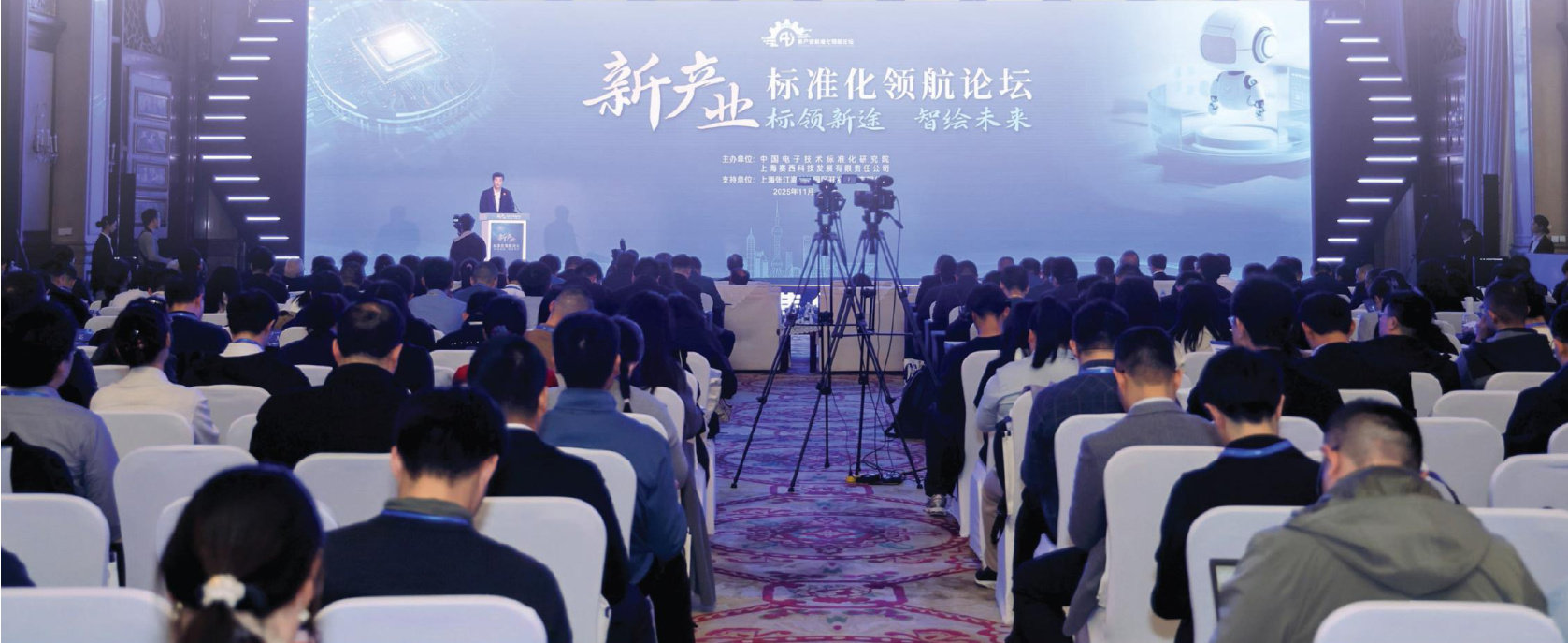 2025年11月6日,“新产业标准化领航论坛”在上海举行。工业和信息化部副部长熊继军,上海市委常委、副市长陈杰出席开幕式并致辞。工业和信息化部科技司副司长姚佳、工业和信息化部电子司副司长史惠康、上海市经济和信息化委员会副主任潘焱、上海市浦东新区人民政府副区长李慧、中国电子工业标准化技术协会理事长张宏图等领导和嘉宾出席开幕式。中国电子技术标准化研究院党委书记、副院长刘贤刚主持。 熊继军在致